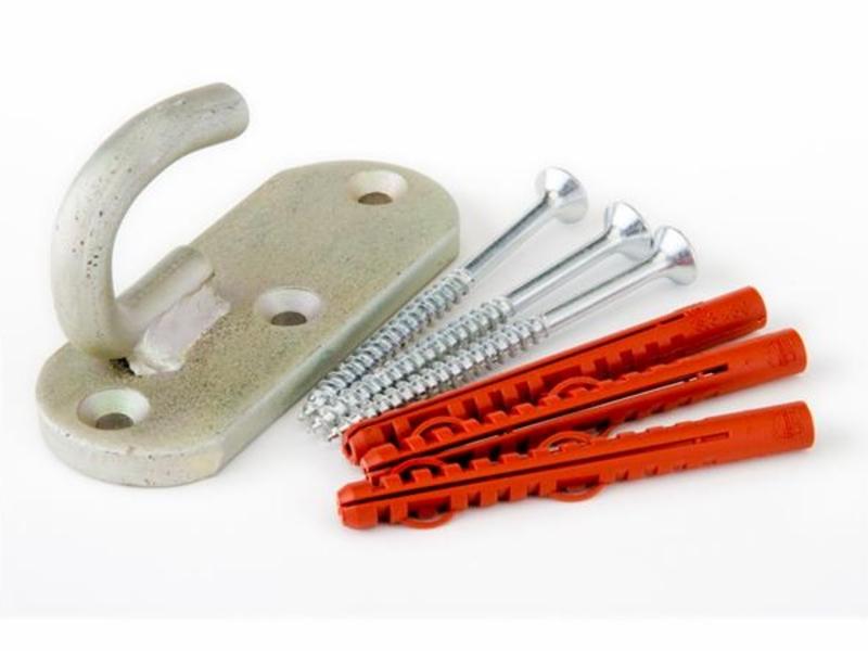 Parat monteringskrok for redningsline. Ved å montere flere kroker (f.eks. ved vindu i soverom og ved balkongdør i stue), kan linen flyttes til et annet sted ved behov.