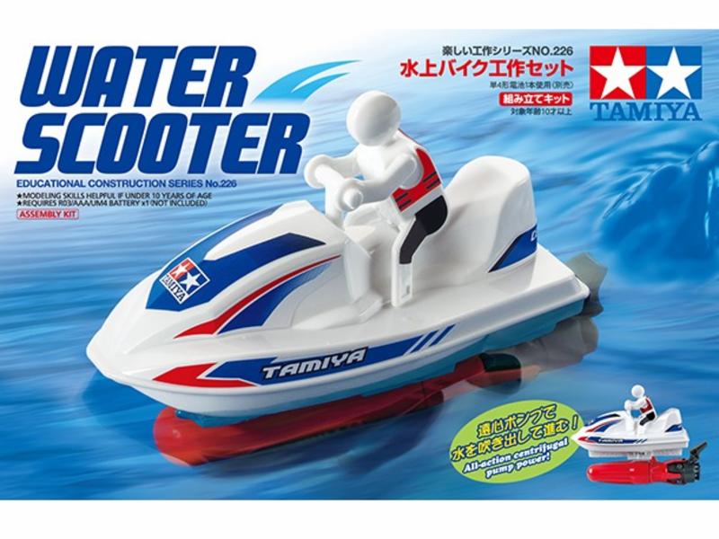 This is an Educational Construction Series assembly kit. It is the first Tamiya kit in the series to use a centrifugal pump with impeller – it sucks in water and shoots it out to move the model forwards, rather than pushing it with a propeller. The kit recreates a water scooter with rider figure, and offers a fascinating insight into the mechanics of motion, perfect for inquisitive minds both young and not-so-young!