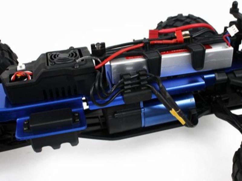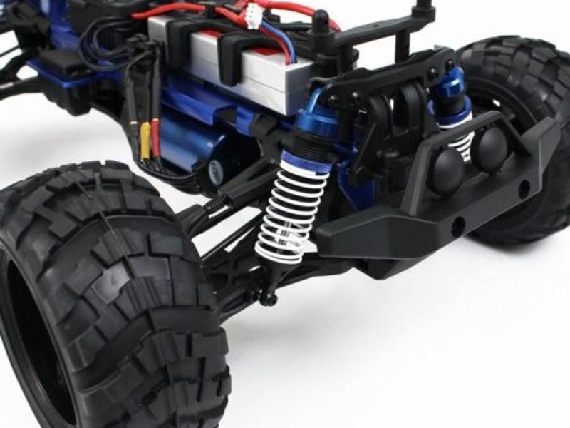 Den levers med børsteløst motorsystem og LiPo batteri. Med denne heftige elektrodrevne Monster Truck’en så kjører du fra de fleste fuel biler. Her har designerne lagt stor vekt både på utforming, kjøreegenskaper, balanse og design. De har også lagt stor vekt på enkelt vedlikehold og at bilen skal være lettskrudd. Her får du hele pakken. En rå Monster Truck, men med utrolig kraft, lang kjøretid og et frekt design!
