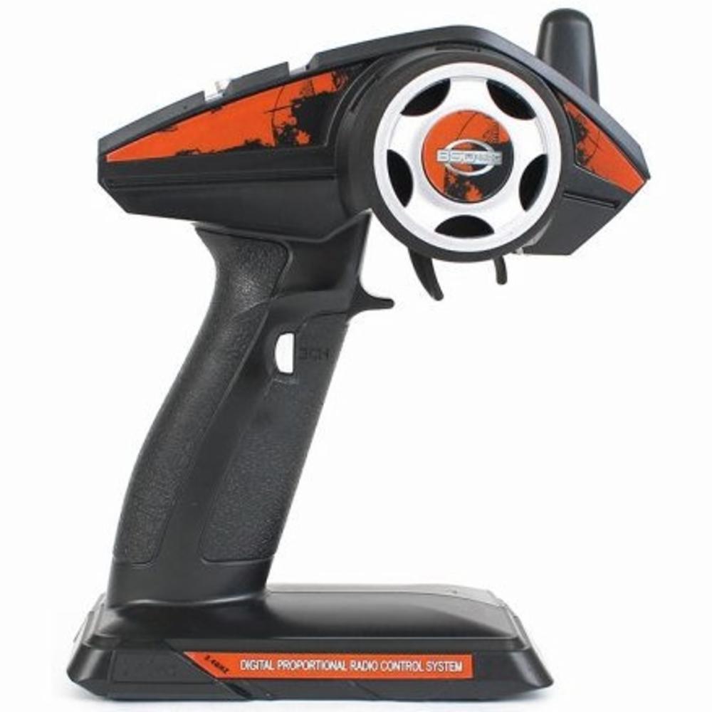 BS 910T leveres med en moderne 2,4 GHz sender og ferdig installert mottaker. Med ett 2,4 GHz system vil du ikke ha noen av de støyproblemer som kunne oppstå med de eldre sendere som brukes AM eller FM-teknologi. En annen stor fordel er at det er finnes ingen grenser på hvor mange du kan kjøre sammen med til enhver tid, det er heller ingen frekvenser som må holdes styr på. Senderen er “bundet” til mottakeren (som allerede er gjort på fabrikken), deretter er det bare tut og kjør. I tillegg har senderen flere innstillinger som lar deg finjustere kjøringen.