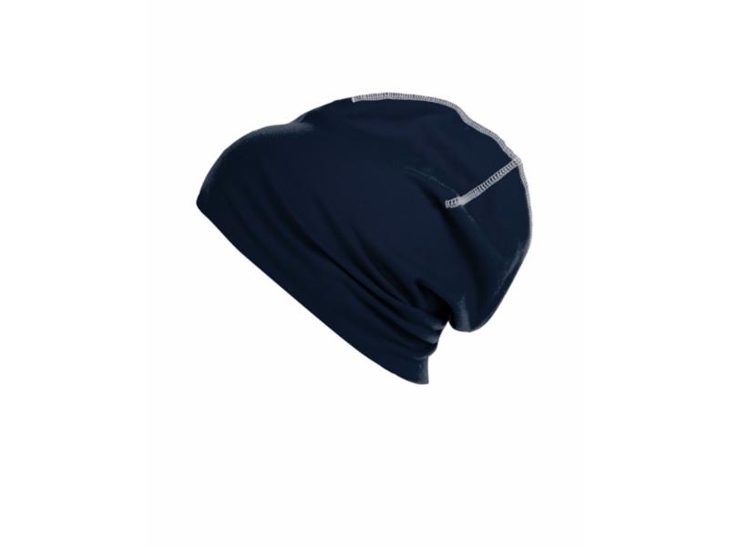 Elastisk og behagelig beanie med kontrastsømmer. Dobbel singel-jersey kvalitet. God stretch og passform.