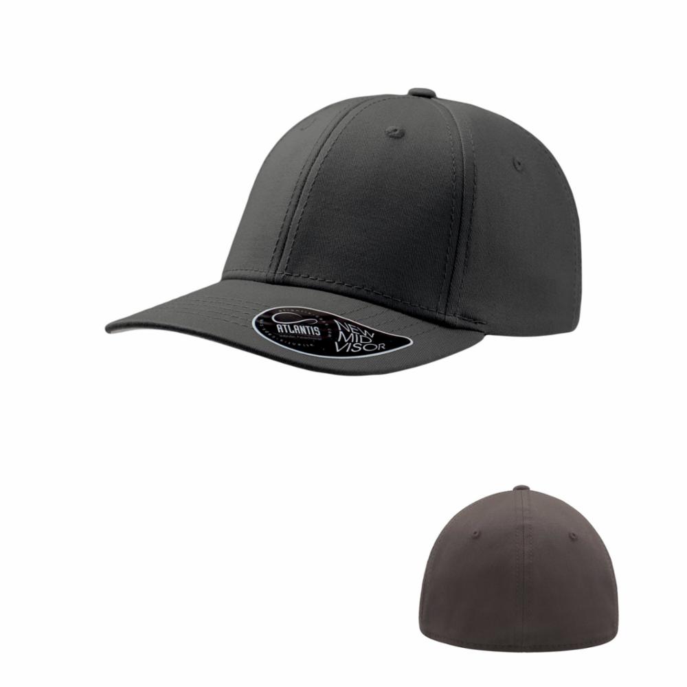 Cap i bomullstretch med 6 paneler. Figursydd og lett buet brem. Medium profil. Helt lukket bakside. Tear away label. 98% bomull - 2% elastan