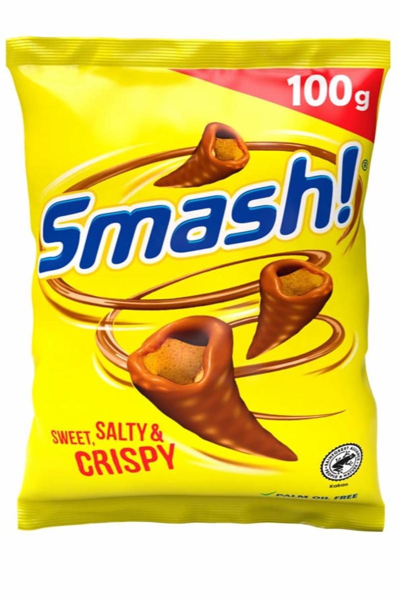 UTZ Certified MB Smash er salte maiskjerner, dekket av Nidar sin deilige melkesjokolade. En perfekt kombo av søtt, salt og sprøtt! Det skal godt gjøres å spise bare én! Sjokoladen er laget med kakao fra Rainforest Alliance-sertifisterte gårder.