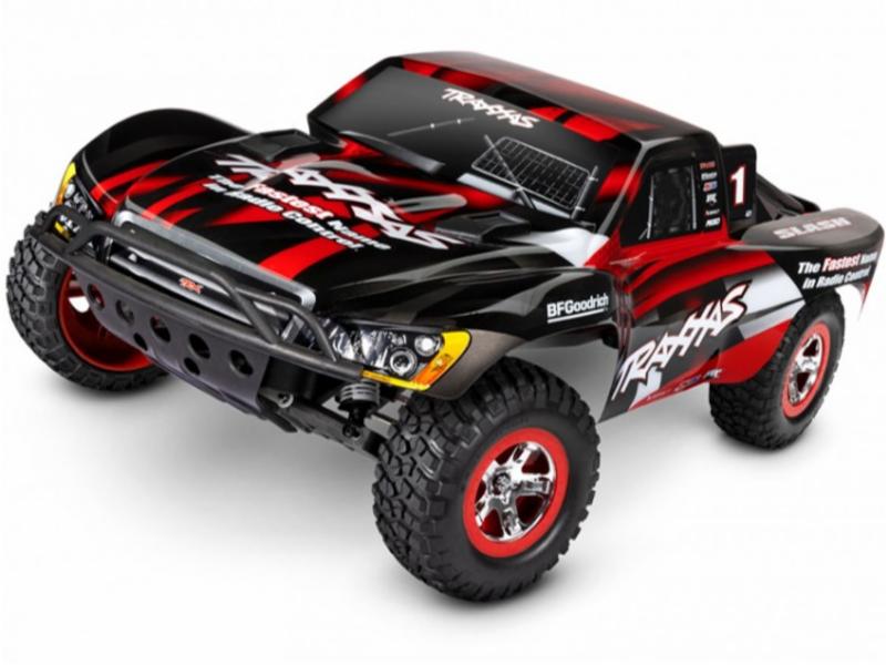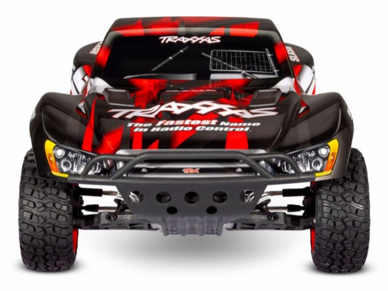 Den prisbelønte Traxxas Slash®-racerbilen med kort bane setter deg i førersetet for intens skjerm-til-skjerm, høytflygende terrengkjøring. Slash tar med deg all action hjem slik at du kan oppleve høyhastighets head-to-head-konkurranse på banen eller i din egen bakgård. Den bakhjulsdrevne Slash er spesialbygd for å fly over hopp og rive full gass gjennom svingene. Den nøye innstilte 4-hjuls uavhengige fjæringen gjenskaper den virkelige kjøre- og kjøreopplevelsen så nært som mulig. Dekkene som ser ut i skala gir akkurat den rette mengden bitt og tykke, blendende skyer av skitt.