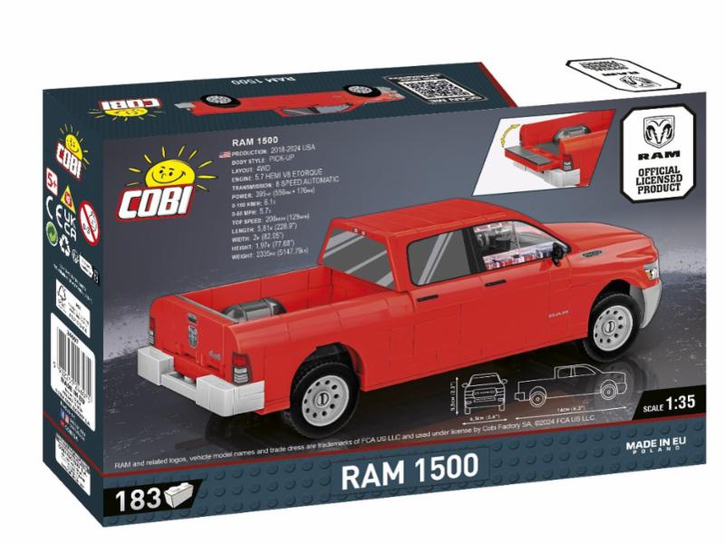 RAM 1500-modellen er ikke bare stor moro, men også et utmerket samleobjekt. Kompletter din voksende samling av COBI-biler i skala 1:35 med en kraftig pickup som helt sikkert vil bli stjernen i blokkgarasjen din. Bygg din egen legende og nyt amerikansk stil i miniatyrform!