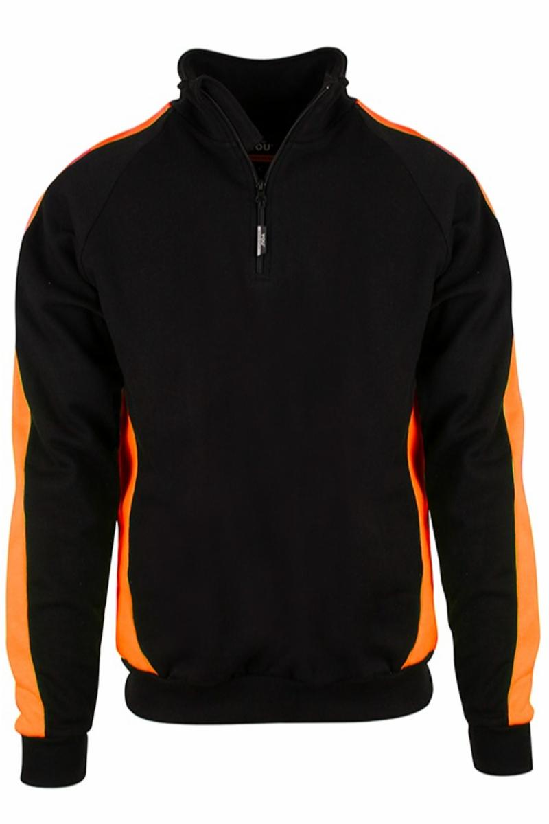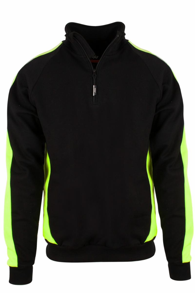 Ekstrem slitesterk unisex PRO zip sweat i bomull og 45% resirkulert polyester. Klassisk snitt og safety gule kontrastfelt i sidene, inni kraven og over skuldre/ermer. Refleksfelt på hver skulder. Tåler hard industriell vask og tørk. (60 grader) Genseren tilhører en ny kolleksjon av resirkulert polyester.