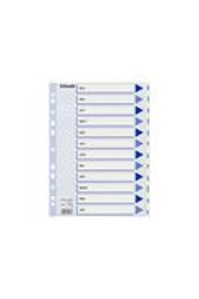 Esselte®-skillearket kommer i A4-format og har blå faner som gjør at du kan holde oversikten over oppføringer eller månedsrapporter, raskt og enkelt. Det har også hvit indeks og blå trykk på fanene for å gjøre det lettere å lese. Skillearket er laget av slitesterk polypropylen. De forsterkede plastkantene beskytter kvaliteten på skillearket ved overdreven bruk.