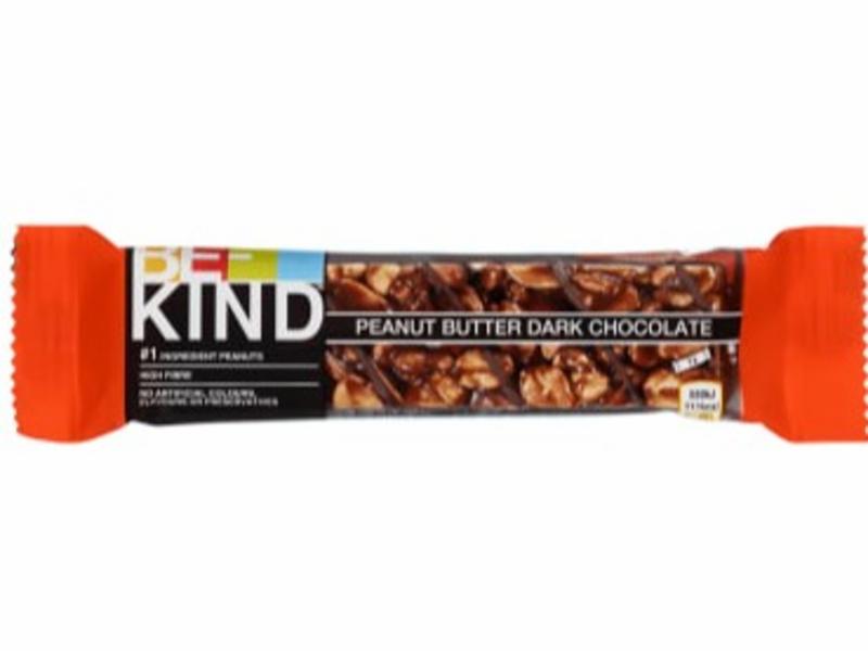 Be-Kind bar med ingredienser du kan se og uttale. Nøttebar med peanøtter, peanøttsmør, og mørk sjokolade, perfekt på farten.