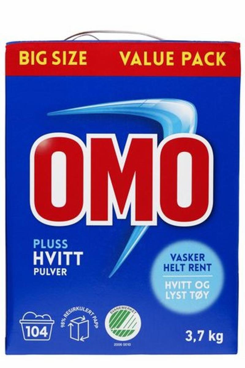 OMO Pluss Hvitt er et effektivt vaskemiddel til hvitt og lyst tøy.