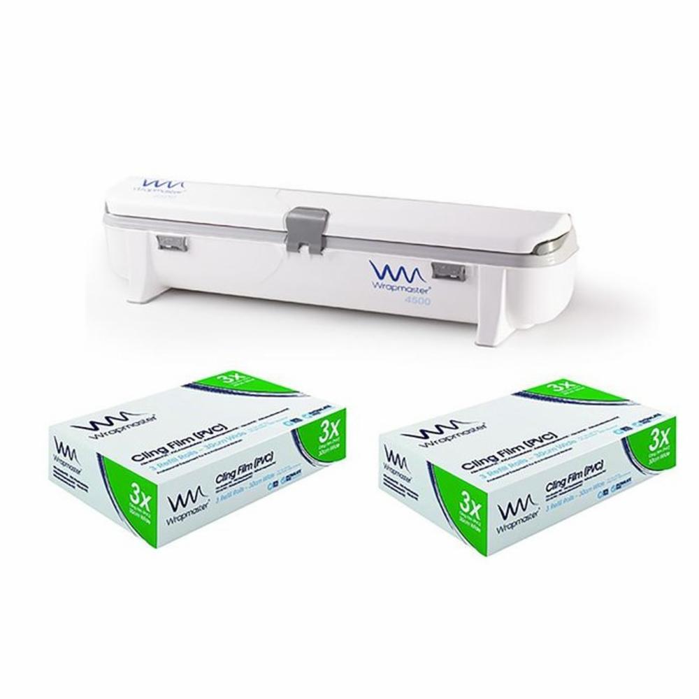 - Inneholder 1 stk hvit Wrapmaster 4500 dispenser og totalt 6 ruller klar cateringfilm