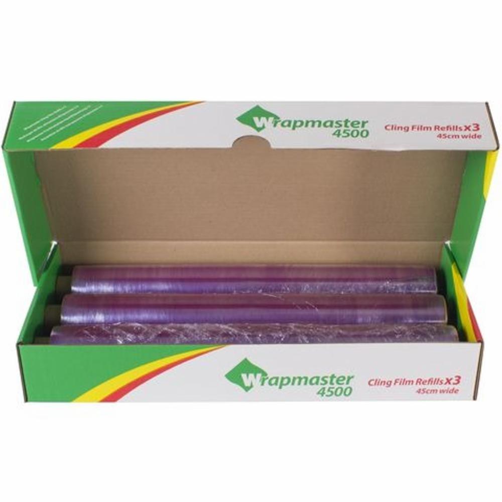 Wrapmaster 4500 startsett med dispenser og 2 esker à 3 ruller cateringfilm.