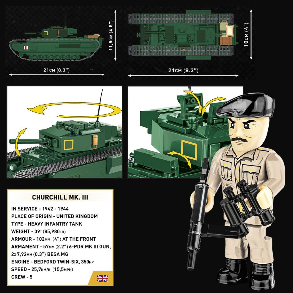 Settet ble designet i en skala 1:35 med 654 COBI-byggeklosser. Tanken er utstyrt med arbeidsspor, et roterende tårn, en bevegelig kanon og en åpningsluke. Settet inneholder en figur av en britisk tanker utstyrt med beret, Sten maskinpistol og kikkert. Klossene har trykk av høy kvalitet som gjenspeiler tankens markeringer og detaljer samt detaljene i tanksjefens uniform.