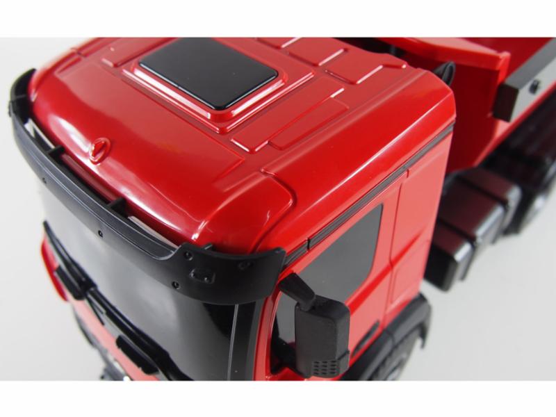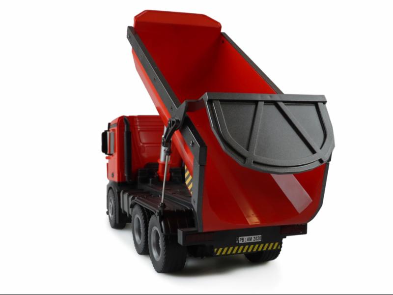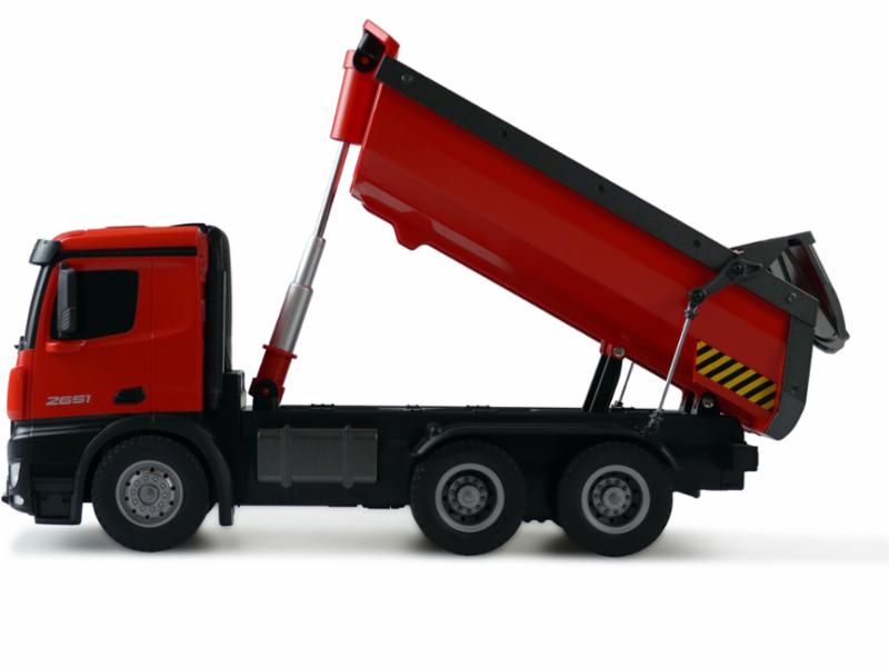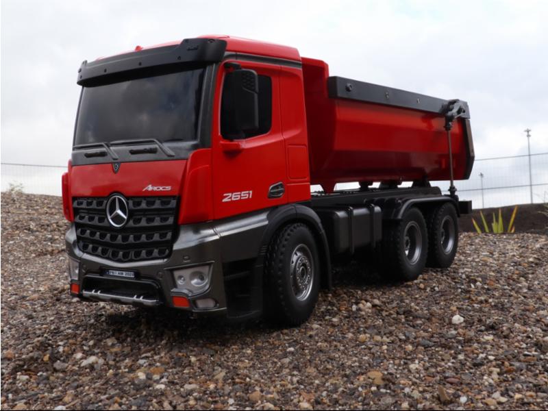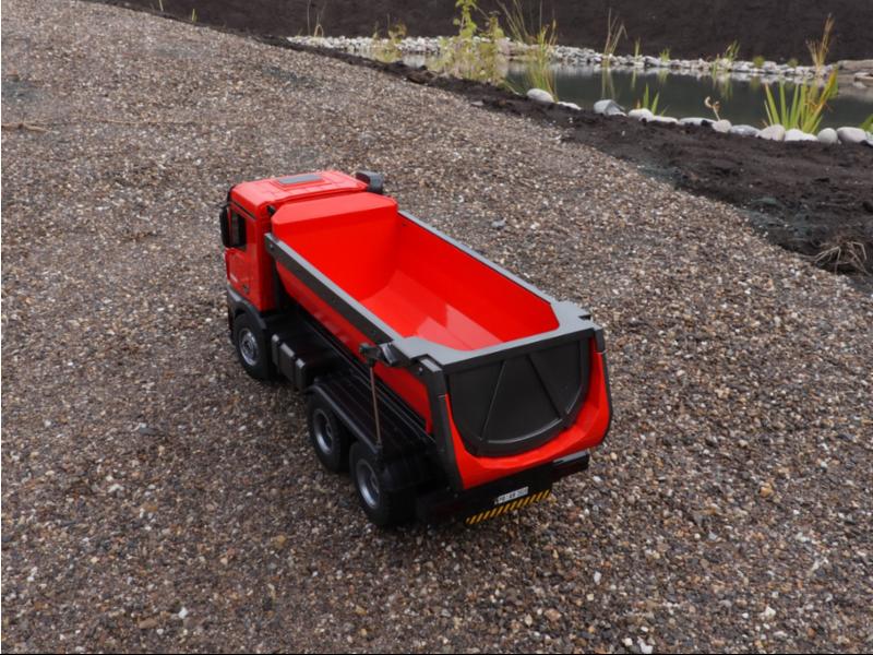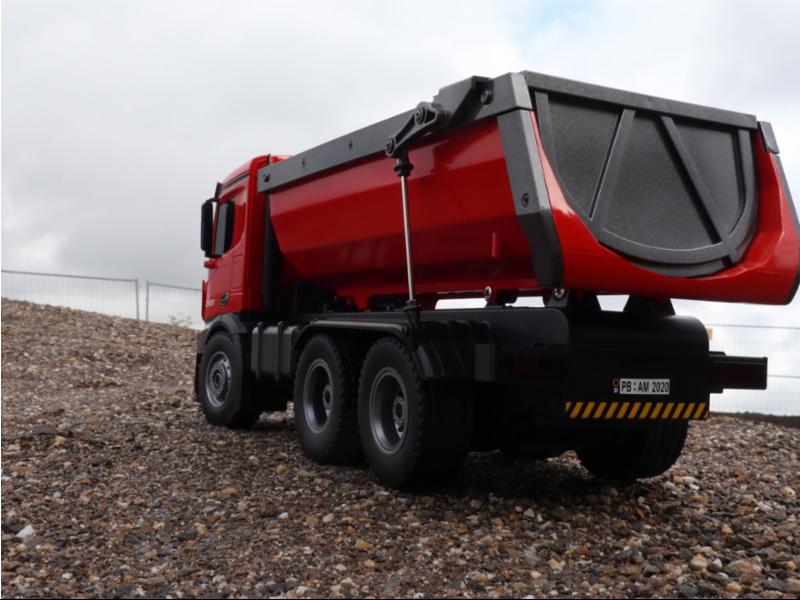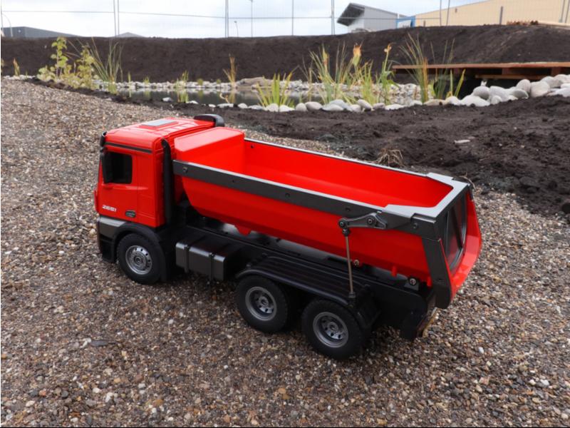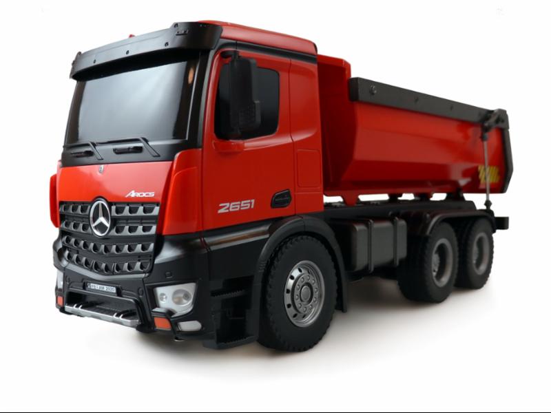 Flott original Mercedes-Benz skalamodell av en Arocs tippbil. Arocs er navnet på den berømte Mercedes-Benz lastebilserien fra Daimler AG. Arocs byggeplassbiler ble presentert for første gang i 2013 og har siden blitt funnet på mange byggeplasser rundt om i verden. De er preget av høy ytelse, pålitelighet og robusthet. Med denne lisensierte modellen kan nesten alle funksjoner kontrolleres som med storebroren, noe som får hjerter til scaler-fans til å slå raskere. Modellen har en 4-hjulsdrift og en innkapslet girkasse, noe som betyr at den er beskyttet mot sprutvann og derfor er egnet for terrengbruk. Strukturen og lakken til denne modellen av høy kvalitet tilsvarer originalen, noe som gjør denne modellen spesiell når det gjelder design og presentasjon. Modellen leveres RTR (klar til bruk) og leveringsomfanget inkluderer alt som kreves for drift. (unntatt batteriene til senderen)