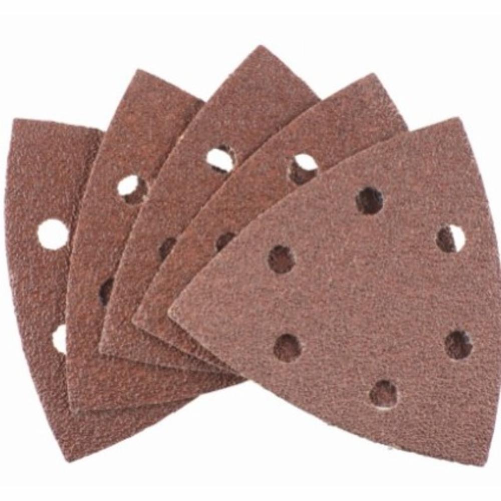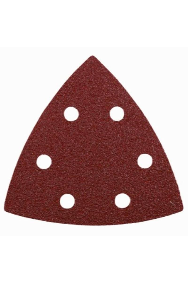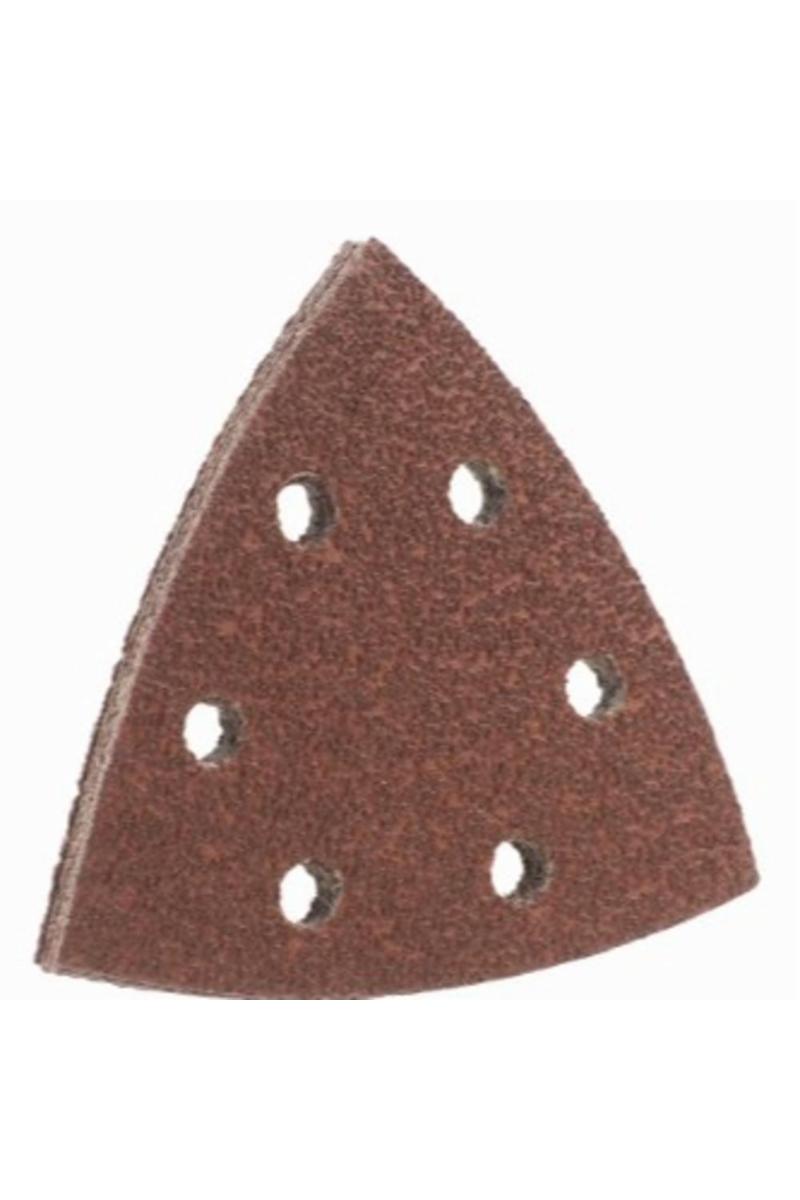 Slibepapir til trekantslibere, 93 mm, til TRÆ & METAL, belagt med slibemiddel af aluminiumoxid, fenolharpiksbundet, stærk rygside, med velcromateriale på bagsiden, stanset, til brug med delta-/trekantsslibere, til slibning af metal og træ, maling, lak, spartelmasse, sten og plast.