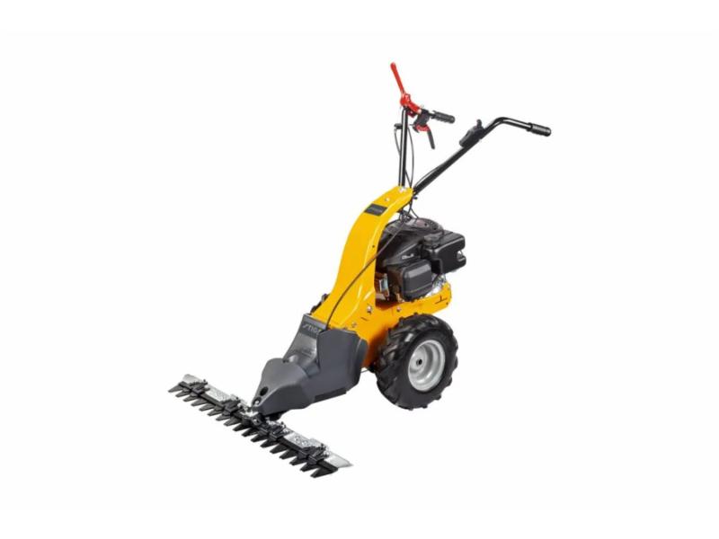 Hageslåmaskin med STIGA-bensinmotor med 87 cm driftsbredde og to bakhjul.