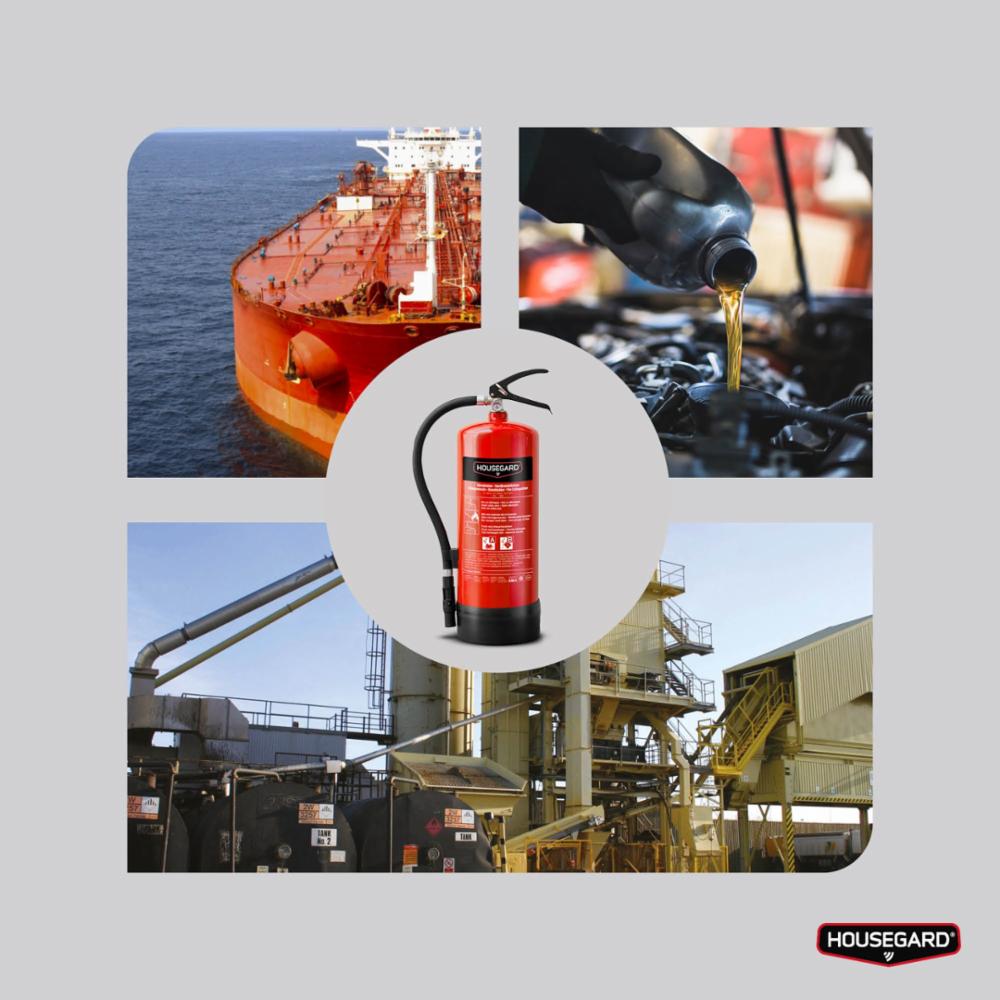 Høytytende skumslukker – helt uten PFASHousegard 6 L skumslukker produseres etter strenge kvalitetskrav og er utviklet for effektiv slukking av branner i brannfarlige væsker (klasse B) og organiske materialer (klasse A). Passer utmerket i industri, verksted, shipping og motormiljøer.