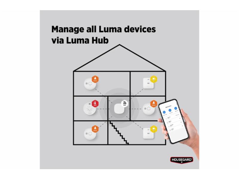 3Med Luma Hub kan du koble Luma-produktene dine til smarttelefonen og få varsler ved utløst alarm, lavt batterinivå eller eventuelle sabotasjeforsøk. Via appen kan du også teste, pause og vise batterinivå på dine enheter.