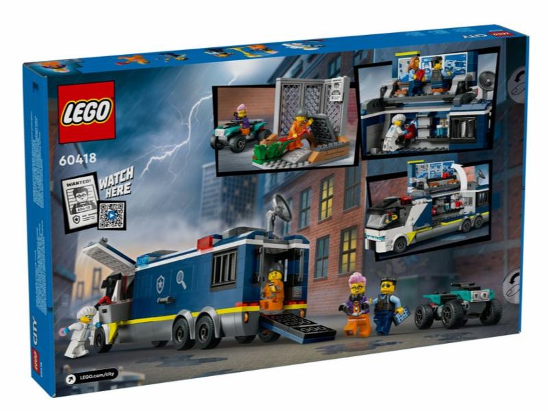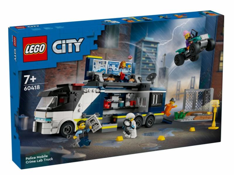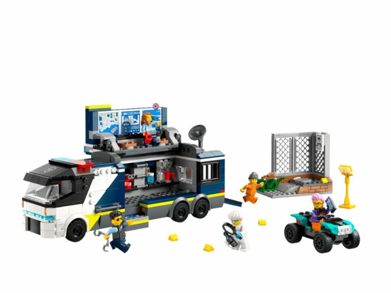 • Polititrailer med etterforskningslab – med LEGO® City Politiets mobile etterforskningslab for etterforskerspirer fra sju år går det lekende lett å finne skurker på rømmen