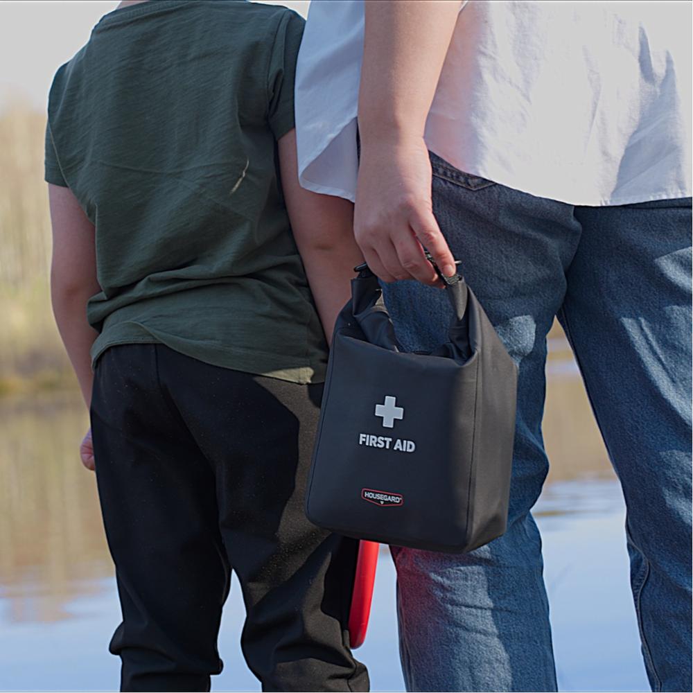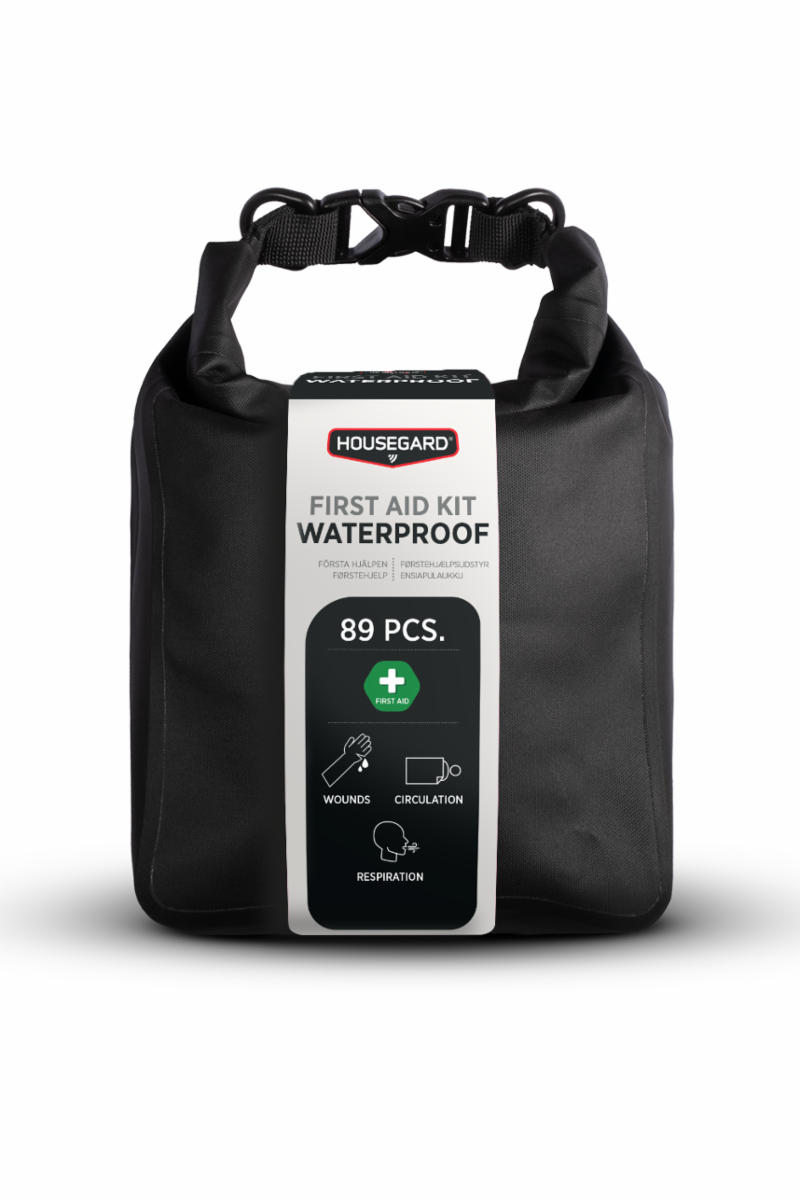 Housegard Waterproof er en vanntett førstehjelpsveske som inneholder de grunnleggende nødvendighetene for å håndtere små og middels store sår i alle værforhold. Perfekt for friluftsliv, båtliv eller for alle situasjoner der vesken kan utsettes for fukt.