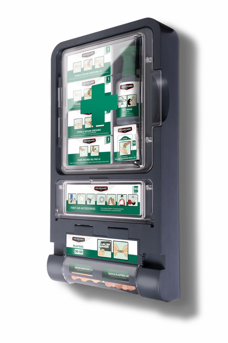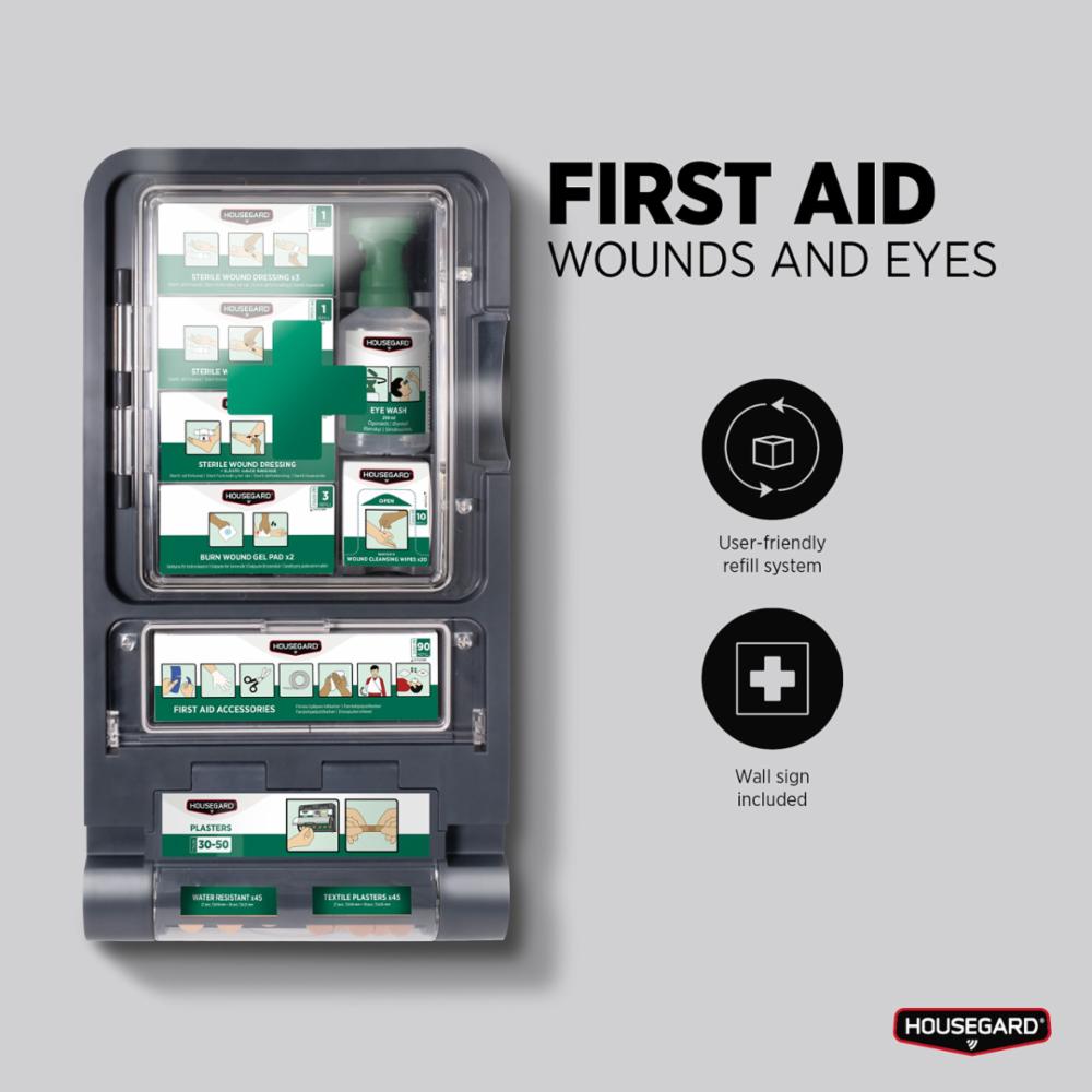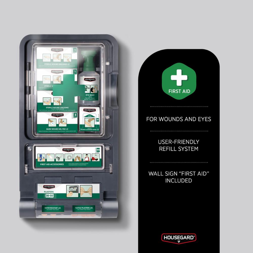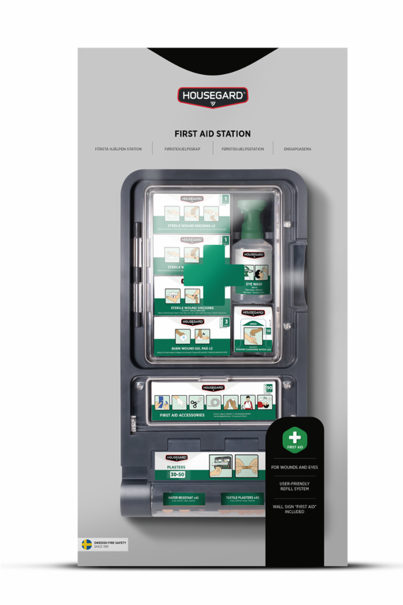 Stasjonen er konstruert for å samle sårbehandling og øyeskyll i én enhet der rask tilgang er viktig.