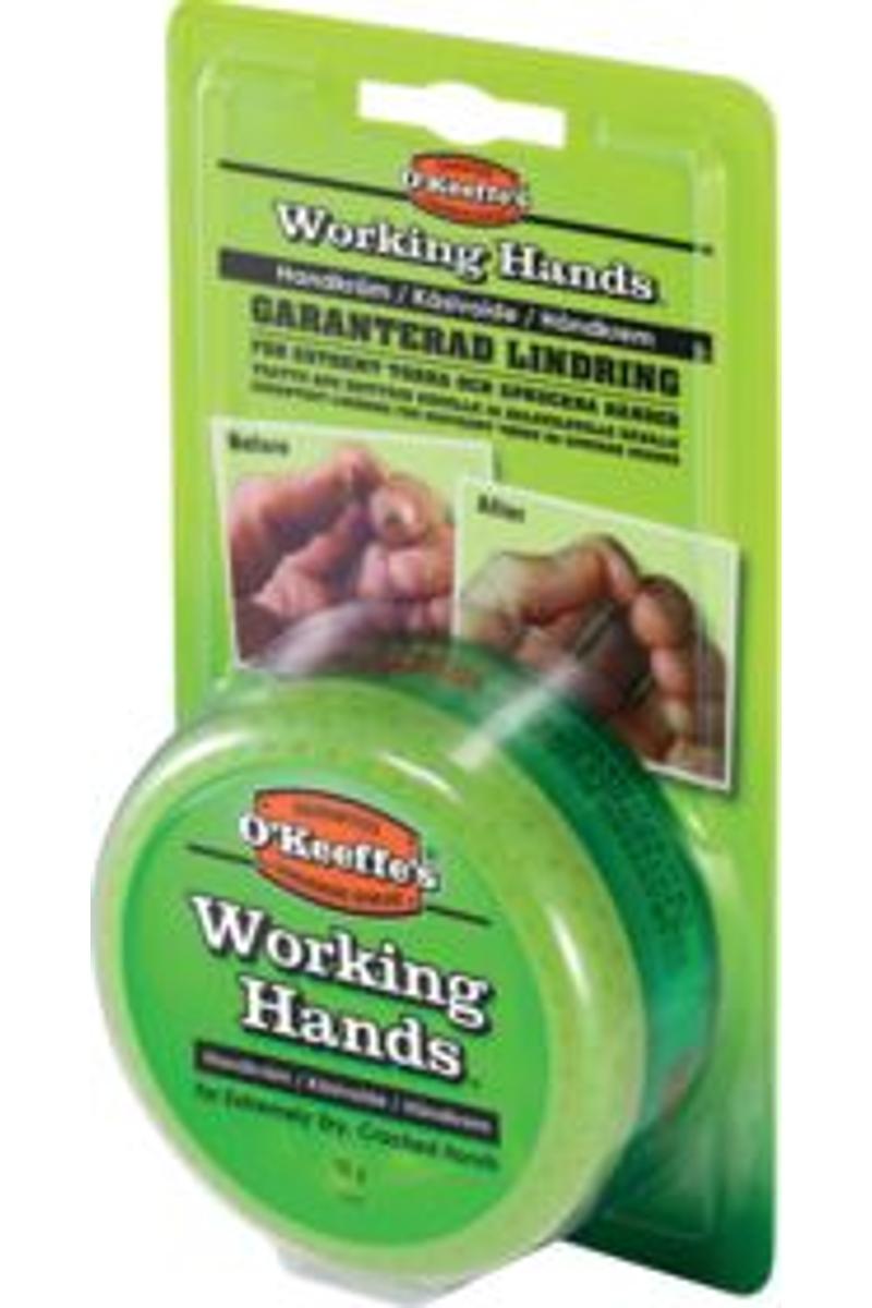 Håndkrem 96g O'Keeffe's Working Hands Hånd krem lindrer og reparerer ekstremt tørre, sprukne hender. Ved daglig bruk, er produktet klinisk bevist til å: Øke fuktighetsnivået umiddelbart, forhindre ytterligere fuktighetstap, gi en beskyttende barriere på hudens overflate og gi en merkbar forskjell i løpet av dager.