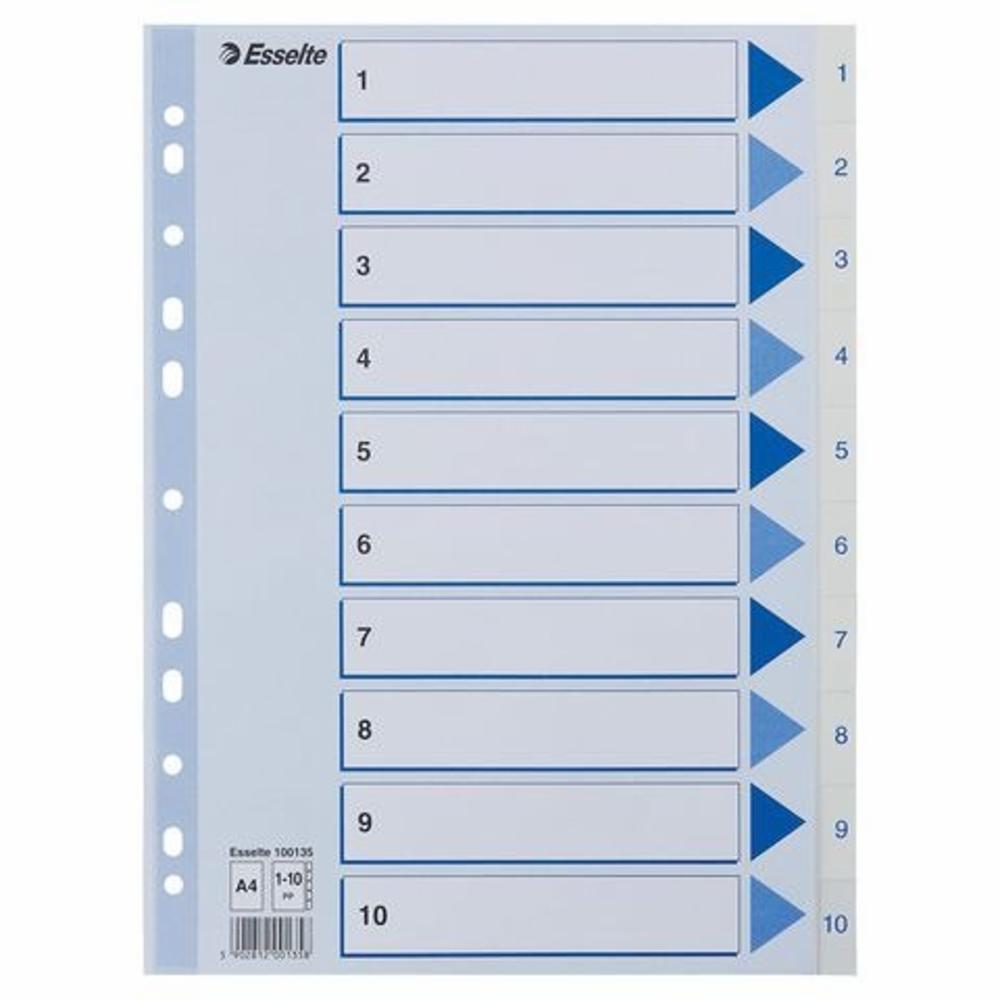 Register ESSELTE A4 plast 1-10 blå/hvit