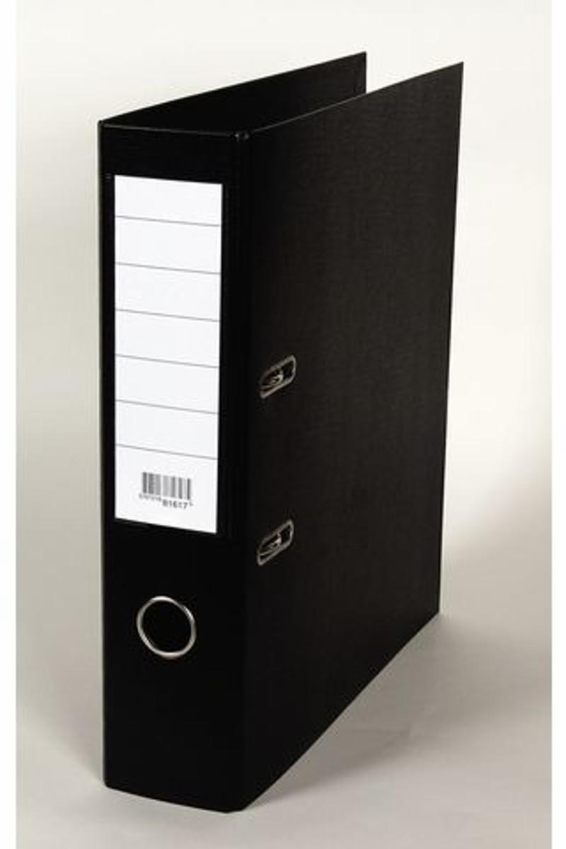 Brevordner produsert i kartong, trukket med polypropylen plast utvendig og innvendig.