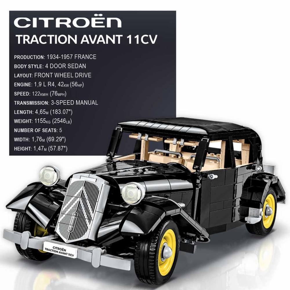 Modell av 1938 Citroen Traction 11C byggesett i 1:12 skala. 1.740 deler