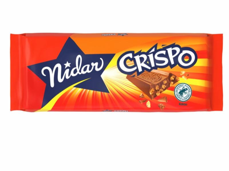 RA Certified MB Melkesjokolade fullpakket med knasende sprø riscrisp. Sjokoladen er laget med kakao fra Rainforest Alliance-sertifiserte gårder.