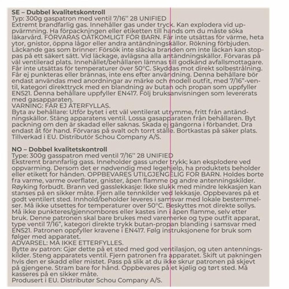 Gassboks 300g 526ml Outfit Gassboks med 7/16 gjenger. Gassblanding: butan 80% / propan 20%. Innhold: 526 ml / 300 gram