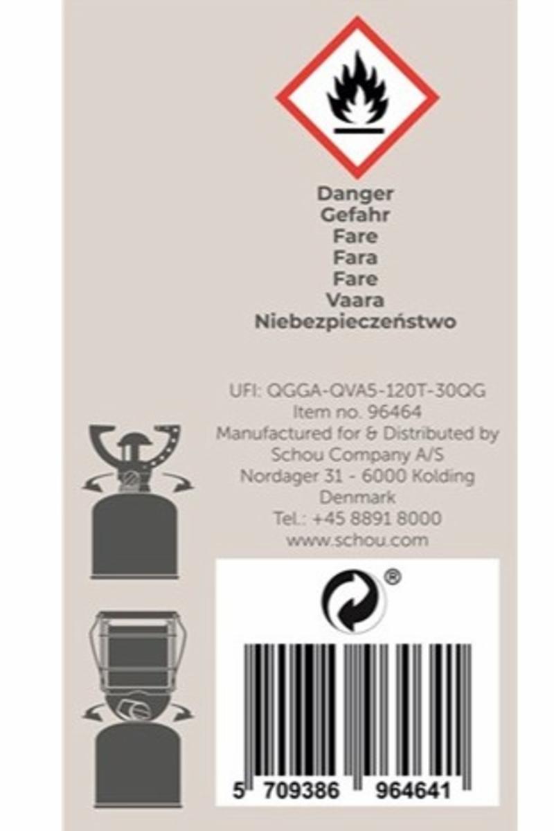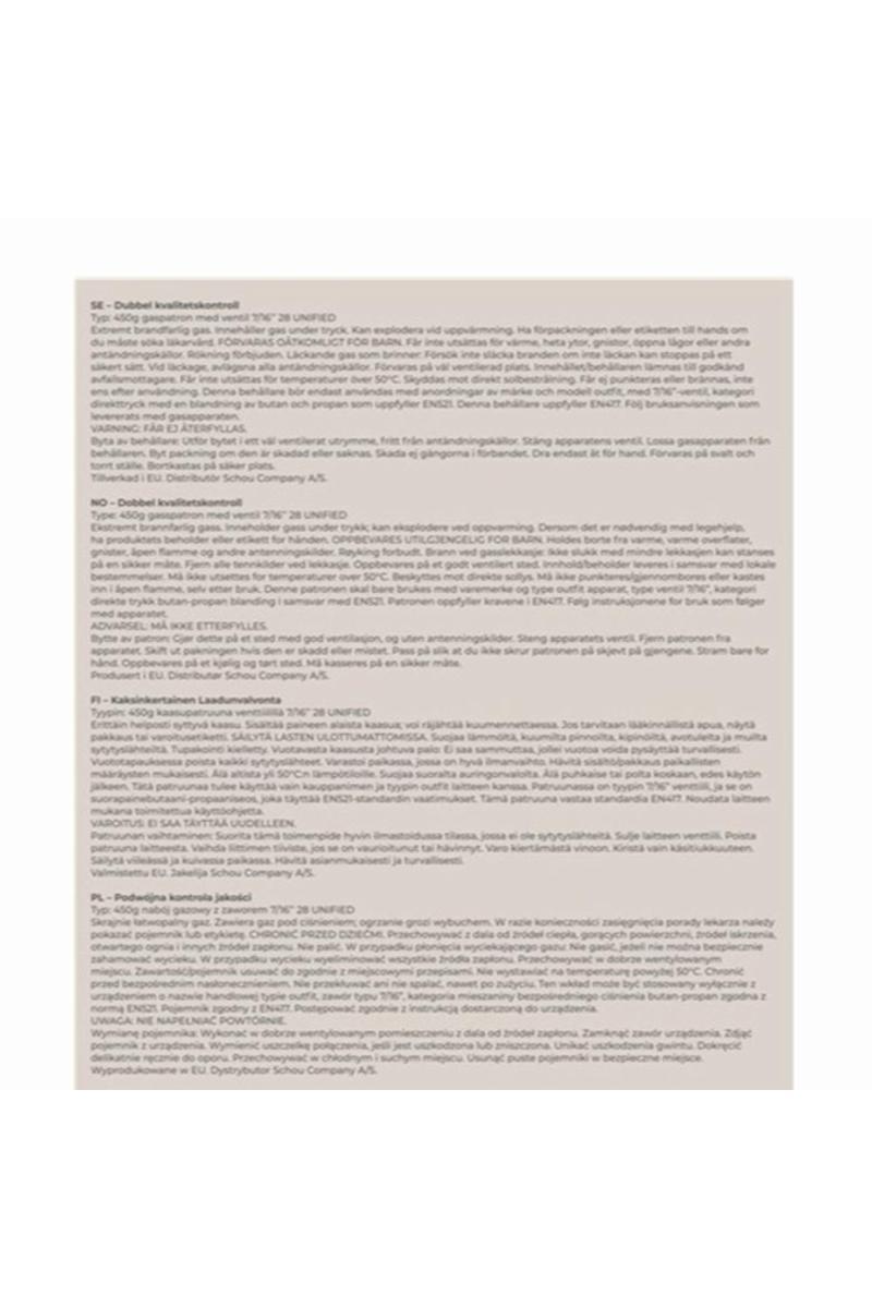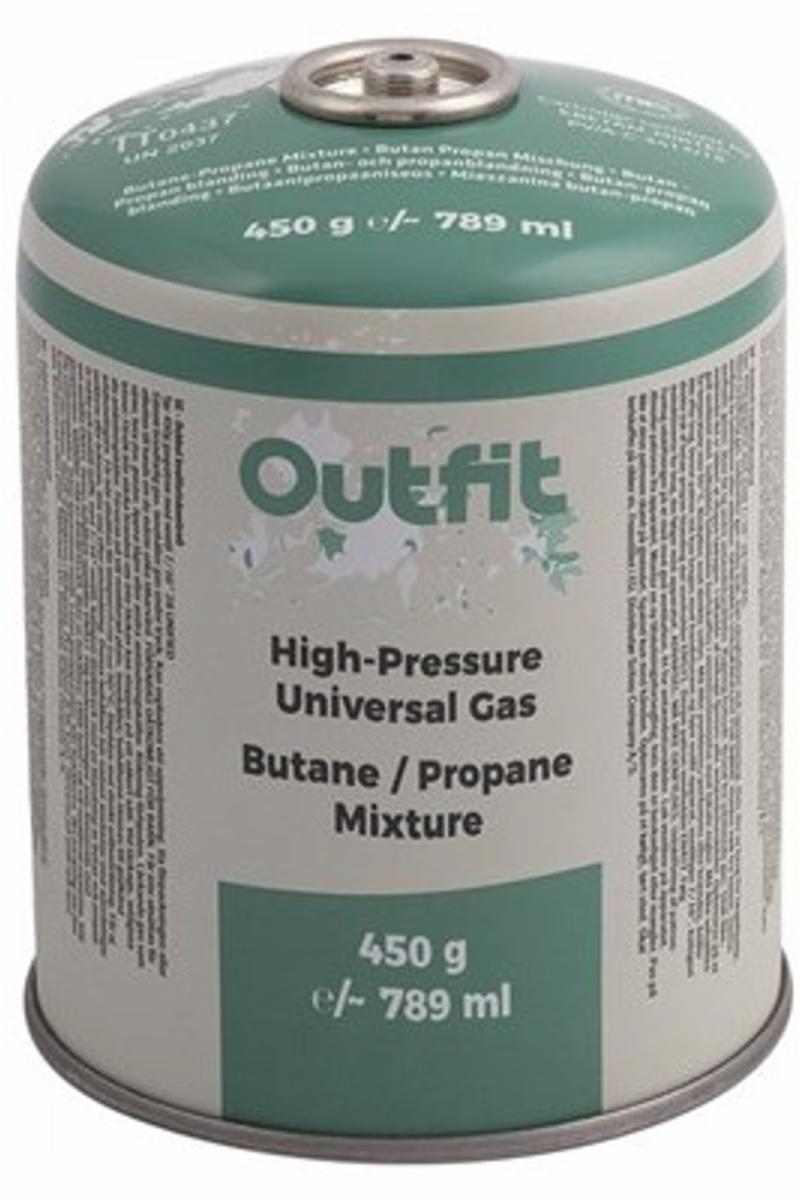 Gassboks 450g 810ml Outfit Gassboks med 7/16 gjenger. Gassblanding butan 80% / propan 20%. Innhold 810 ml/450 gram.