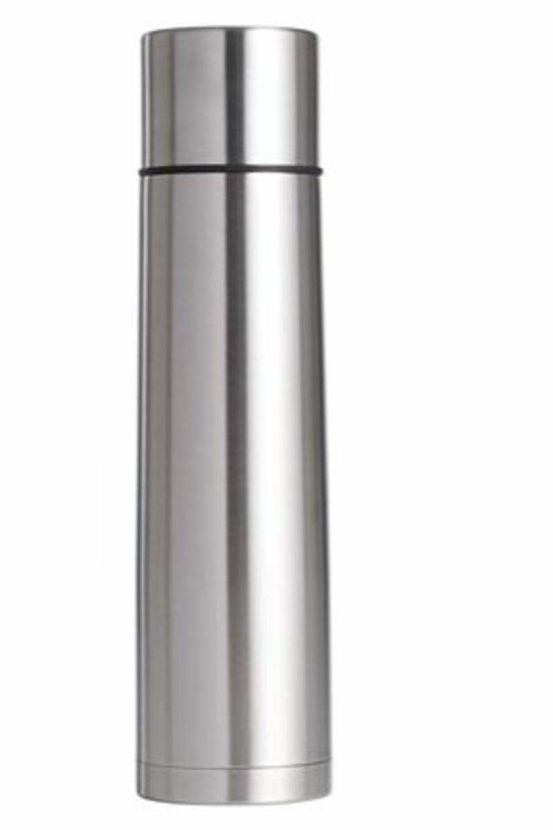 Termos 1,0L rustfritt stål Termos i rustfritt stål Topp Ø7,2cm bunn Ø8cm Høyde 32cm Materiale: Rf. stål, plastikk og silikon 304 innvendig, 201 utvendig