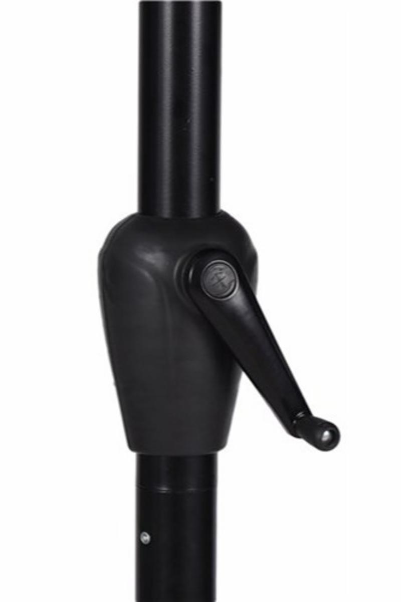 Parasoll med tilt sort,grå Ø3M Parasoll Felix 3m sort, med sveiv og mulighet til å tilte. Helningen/tiltingen på parasollen kan ikke justeres. Parasollen er lett å slå sammen. Det følger ikke med parasollfot. Parasollen har en diameter på 3m. Parasollduken er laget i 180g/m² polyester. Høyde 2,5m og rørtykkelse 48mm. det er 8 metallribber i duken. --- Farge: sort/grå Materiale: aluminium og polyester. Rørtykkelse: 48mm Med sikkerhetsutlufting i toppen