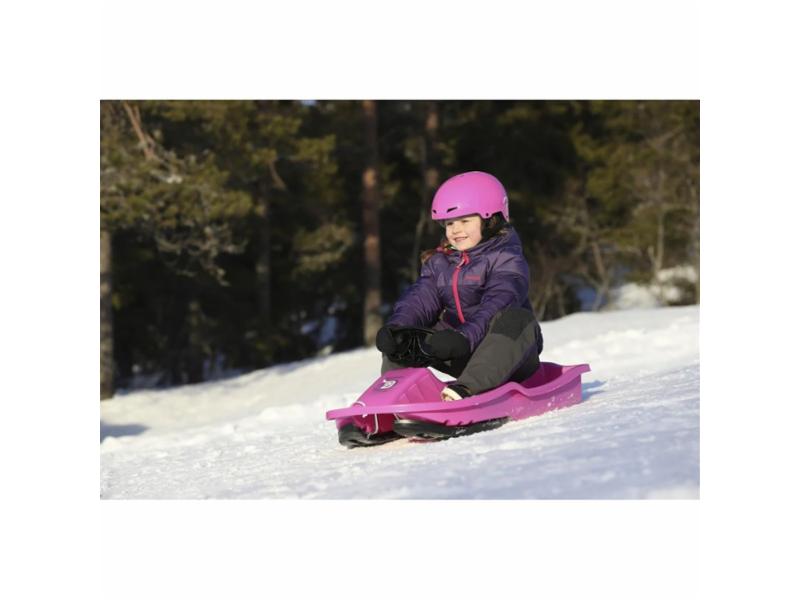 Denne kjelken er designet med et ratt som styrer skiene under, noe som gjør den enkel å manøvrere. Den slitesterke plastkonstruksjonen sørger for en robust og motstandsdyktig konstruksjon, samtidig som den er lettere enn andre kjelker med ratt. Den lette konstruksjonen gjør den lettere å trekke i oppoverbakke som en tradisjonell kjelke. For ekstra sikkerhet er den utstyrt med brems og bakside refleks. Kjelken er produsert i Europa, noe som sikrer høy kvalitet på håndverk og materialer.