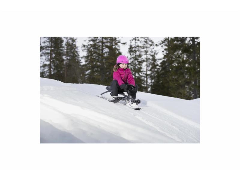 Denne mindre kjelken er konstruert med en solid stålramme og en brems for å sikre trygg kjøring. De rette skiene og det lettstyrte rattet gir utmerket kontroll. Med en maksimal førervekt på 80 kg passer den til et bredt spekter av unge førere, og byr på både moro og sikkerhet på snøeventyr.